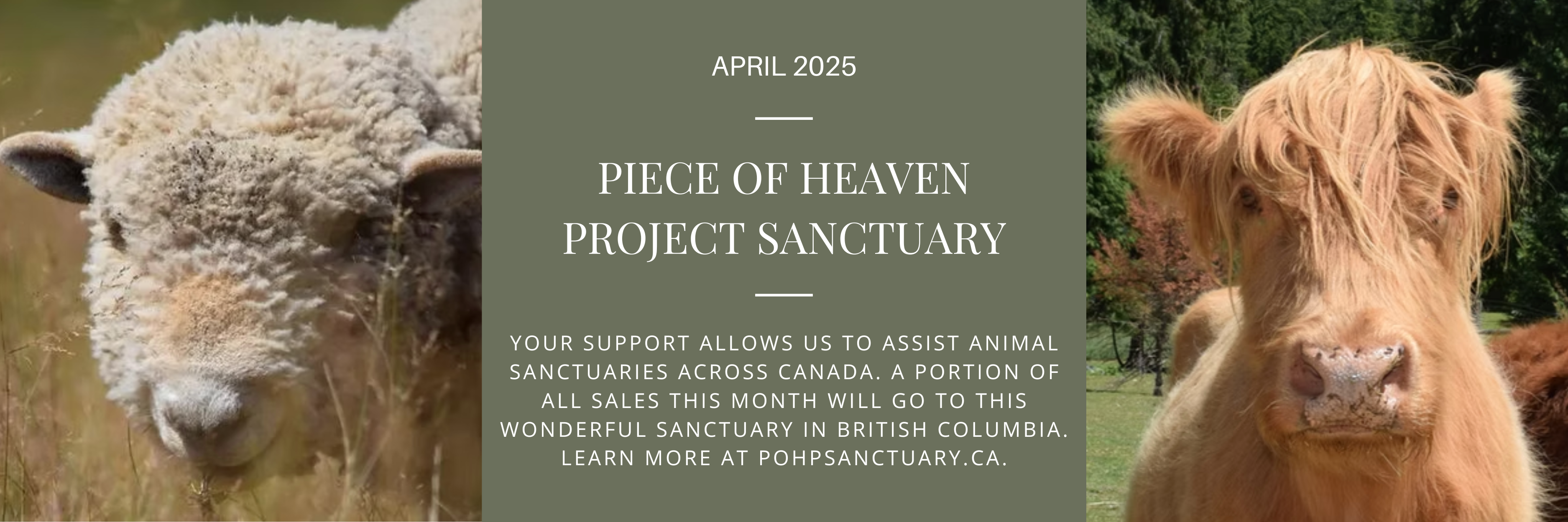 In addition to holding various fundraising events over the past 7 years, we also donate 1% of our sales to a chosen animal sanctuary each month. It is our small way of giving back to those doing the real work in keeping at risk farmed animals safe and taken care of. Since 2017, your support has allowed us to donate over $15,000 to various sanctuaries across Canada. Thank you so much for allowing us to continue this mission!