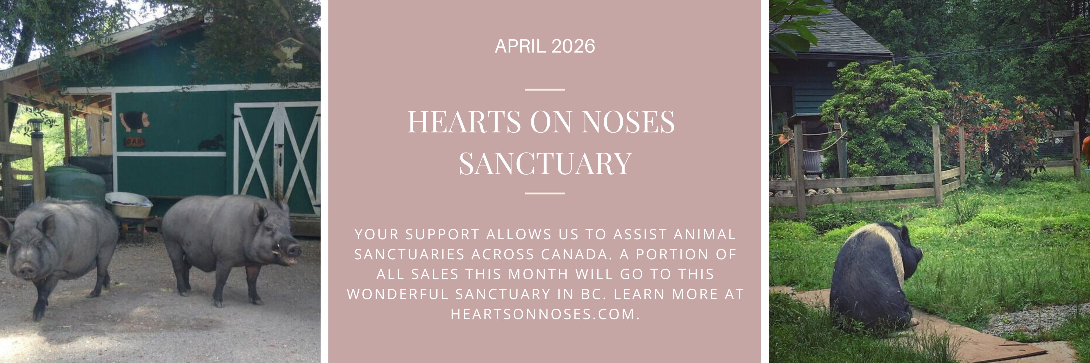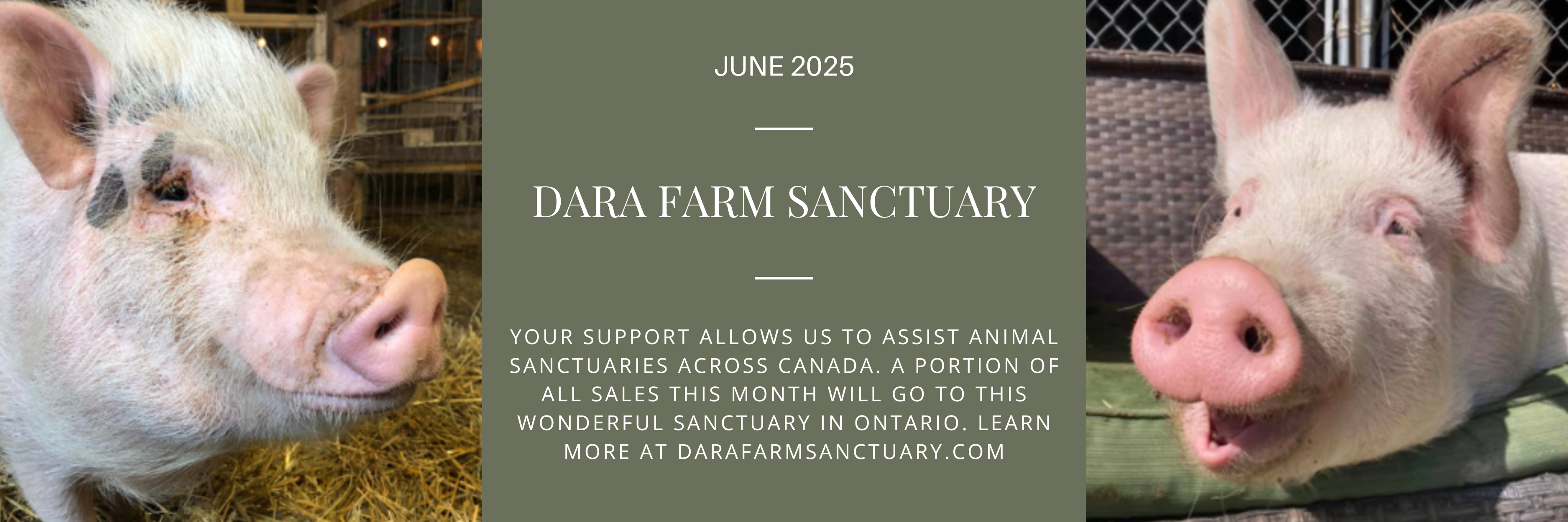 In addition to holding various fundraising events over the past 7 years, we also donate 1% of our sales to a chosen animal sanctuary each month. It is our small way of giving back to those doing the real work in keeping at risk farmed animals safe and taken care of. Since 2017, your support has allowed us to donate over $15,000 to various sanctuaries across Canada. Thank you so much for allowing us to continue this mission!