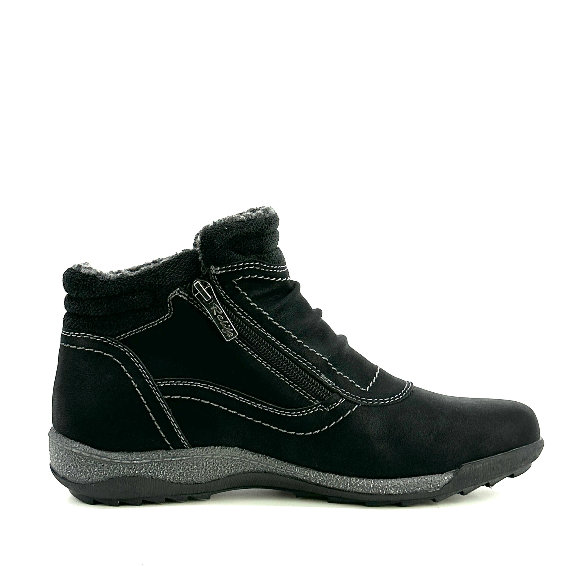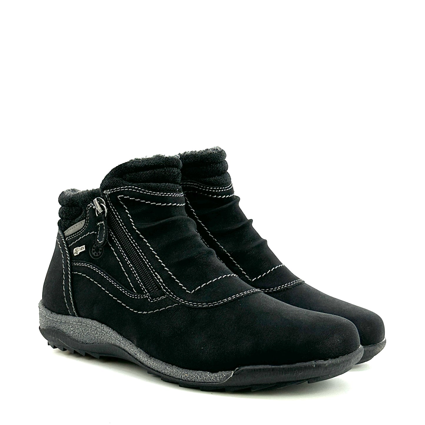 Ankle boots with inner side zipper allowing for easy in and out. Super comfortable with a soft microfibre lining and shock absorbing insole. Grippy outsoles for stability in winter conditions. Water-Resistant.