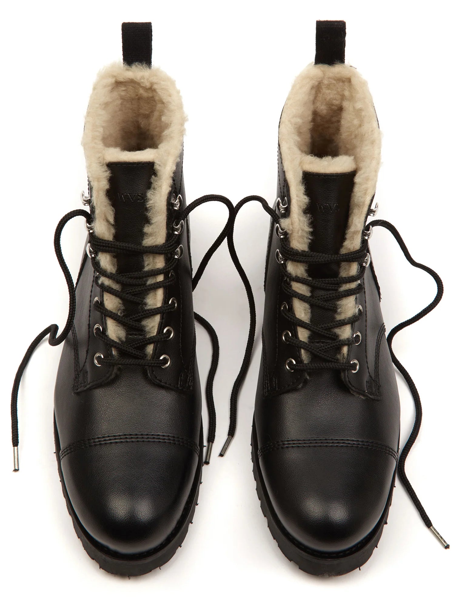 Built for strength and stability, these boots feature deep-tread rubber soles with recycled content, brushed metal eyelets, speedy hooks, and durable recycled polyester laces with metal tips. Finished with an embroidered WVS pull tab and an embossed outsole, they combine style, comfort, and resilience for winter work, outdoor adventures, or everyday wear. Made ethically in Portugal, these boots are built to last season after season.