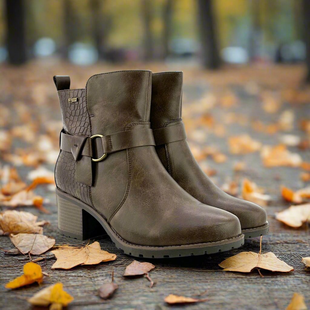 Over the ankle heeled boots with inner side zipper allowing for easy in and out. Super comfortable with a soft microfibre lining and shock absorbing insole. Grippy outsoles for stability in winter conditions. Water-Resistant.