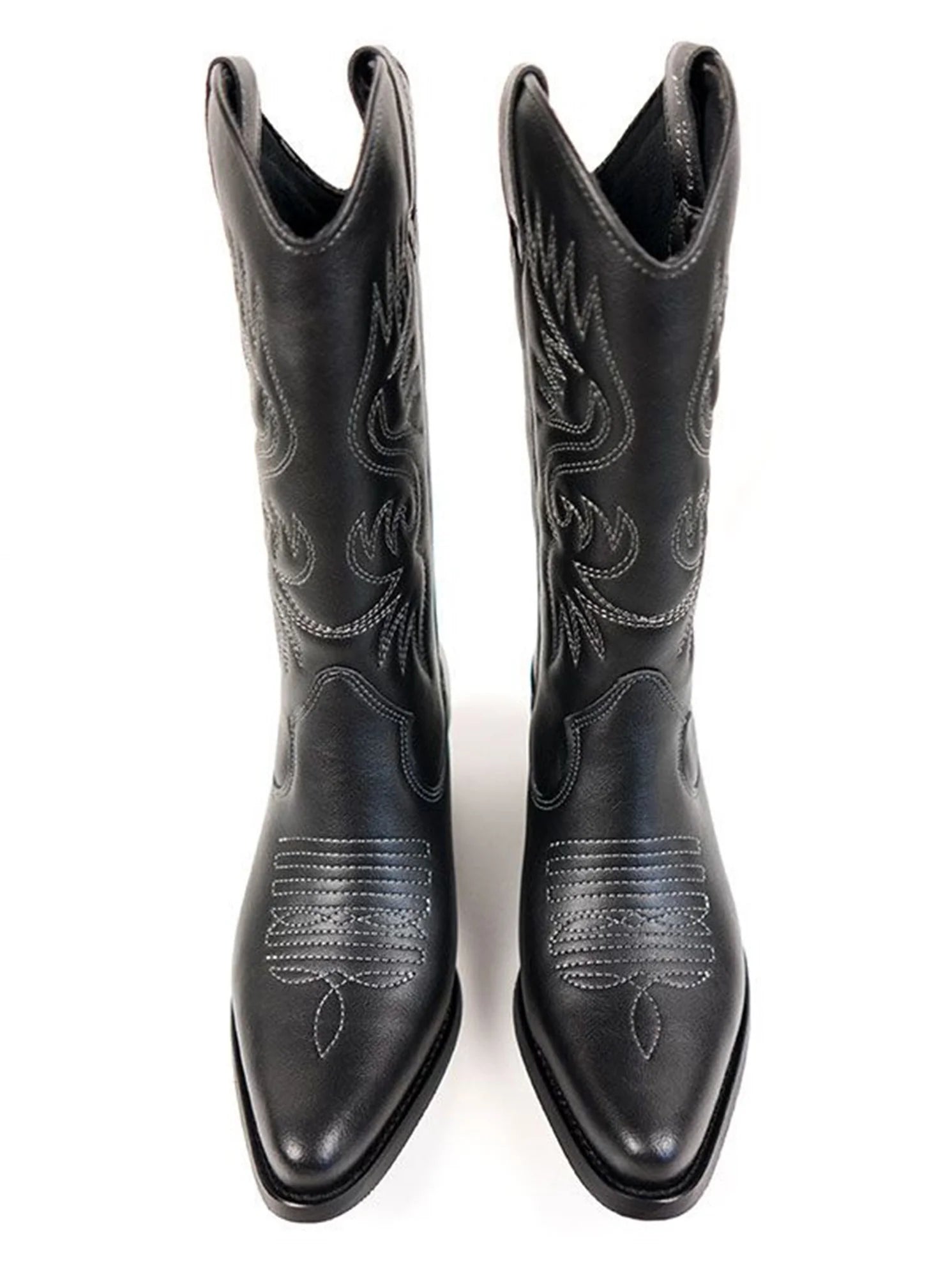 Step out in style with the Women’s Black Western Boots, crafted from Italian vegan leather made with bio-oil from organic cereal crops in a carbon-neutral process. Designed for both fashion and performance, these boots feature decorative stitching and applique on the uppers, paired with a soft vegan suede lining for all-day comfort. Cushioned, non crush-down insoles made from recycled rubber provide support and resilience, keeping your feet comfortable season after season.
